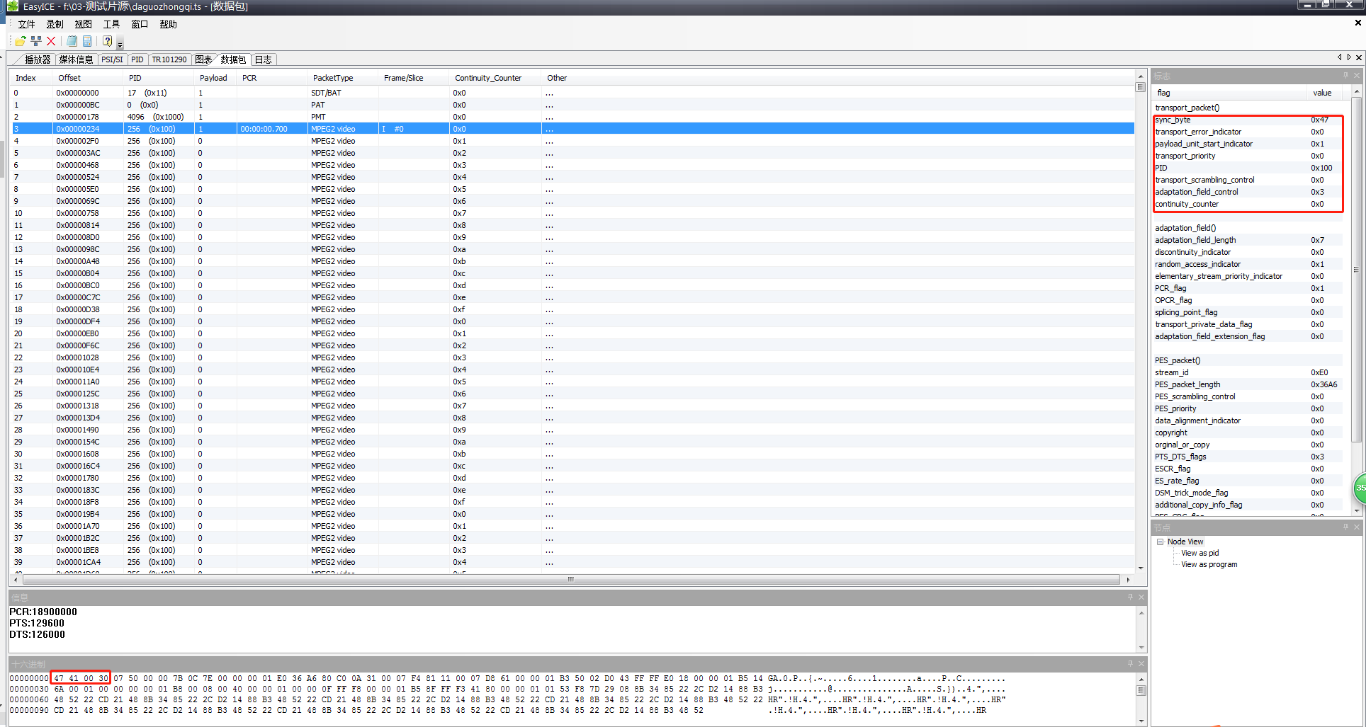 在上一节中,我们可以看到PID这个被标红的字段频繁地出现。PID是当前TS流的Packet区别于其他Packet类型的唯一识别符,通过读取每个包的Packet Header,我们可以知道这个Packet的数据属于何种类型。上一节列出了几项固定的PID值,它们用于识别存储了特殊信息的Packet。下面要谈的PAT表的PID值就是固定的0x0000。