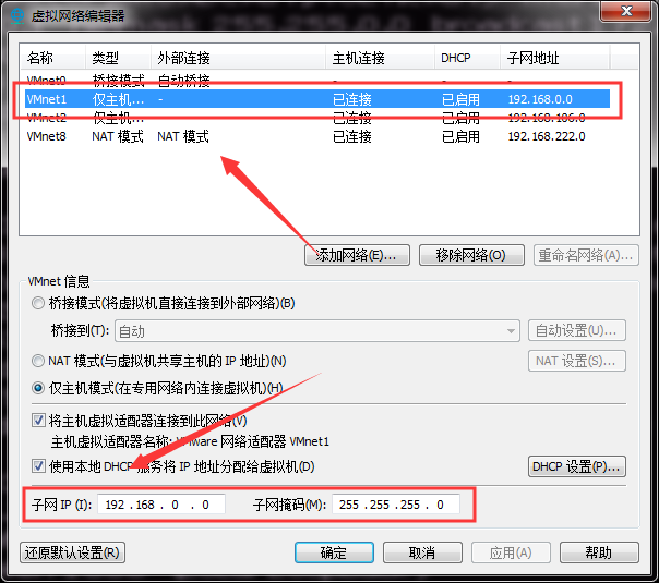 因此我们使用仅主机模式,只用修改VMnet1就可以。