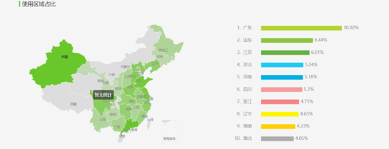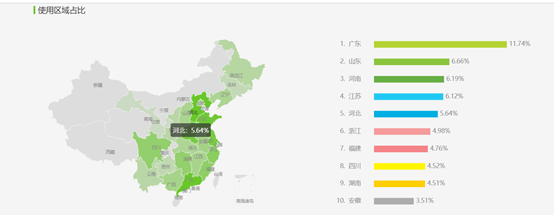 区域上,广东省占比最多,笔者认为这与其人口年龄分布也有着一定关联。