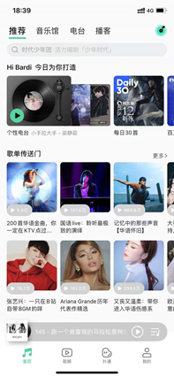 QQ音乐在这里功能与网易云音乐基本一致,但相较于网易云缺乏侧重点。