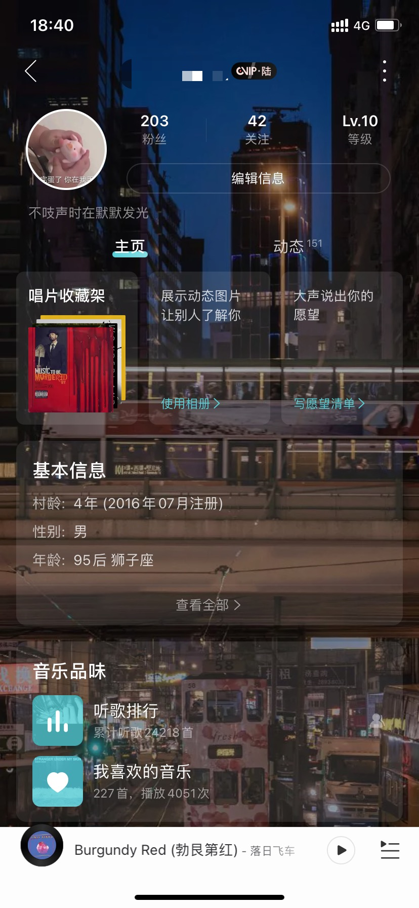 网易云在这里可以修改全图背景、视频背景;唱片收藏夹模块,可以展示购买的数字专辑,激发已购买用户的表现欲,体现其在社交模块下的功夫,同时这一举措我认为可以一定程度提升用户购买数字专辑热情。