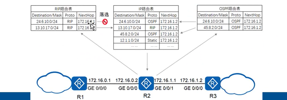 2、路由表:每个路由器中有一个路由表,路由表则是若干条路由信息的一个集合。