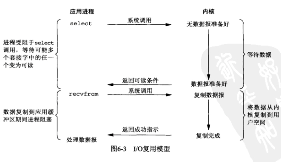 这里在调用recv前先调用select或者poll,这2个系统调用都可以在内核准备好数据(网络数据到达内核)时告知用户进程,这个时候再调用recv一定是有数据的。因此这一过程中它是阻塞于select或poll,而没有阻塞于recv,有人将非阻塞IO定义成在读写操作时没有阻塞于系统调用的IO操作(不包括数据从内核复制到用户空间时的阻塞,因为这相对于网络IO来说确实很短暂),如果按这样理解,这种IO模型也能称之为非阻塞IO模型,但是按POSIX来看,它也是同步IO,那么也和楼上一样称之为同步非阻塞IO吧。