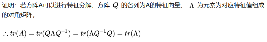 由于这里没有公式编译器&#xff0c;我将以图片形式证明。 1、矩阵的迹是什么&#xff1f; 矩阵的迹是特征值的加和。 2、矩阵的迹的性质及其证明。