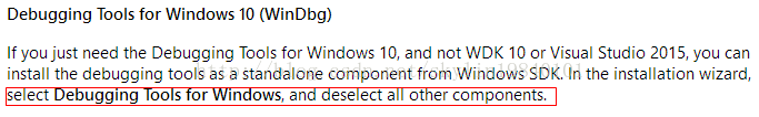 一般我们选择第三种方法即可,下载安装Windiows SDK,安装组件时只选择 WinDbg即可