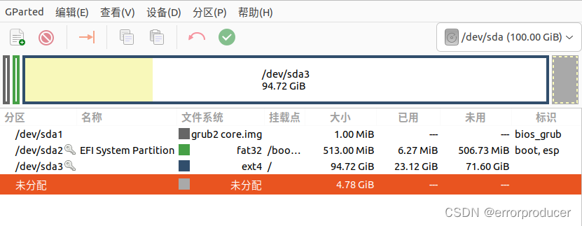 再输入属下命令启动gparted