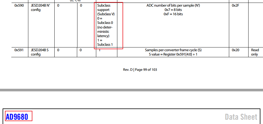 - Subclass 2:用于JESD204B,有确定性延时,值需要sync信号即可。