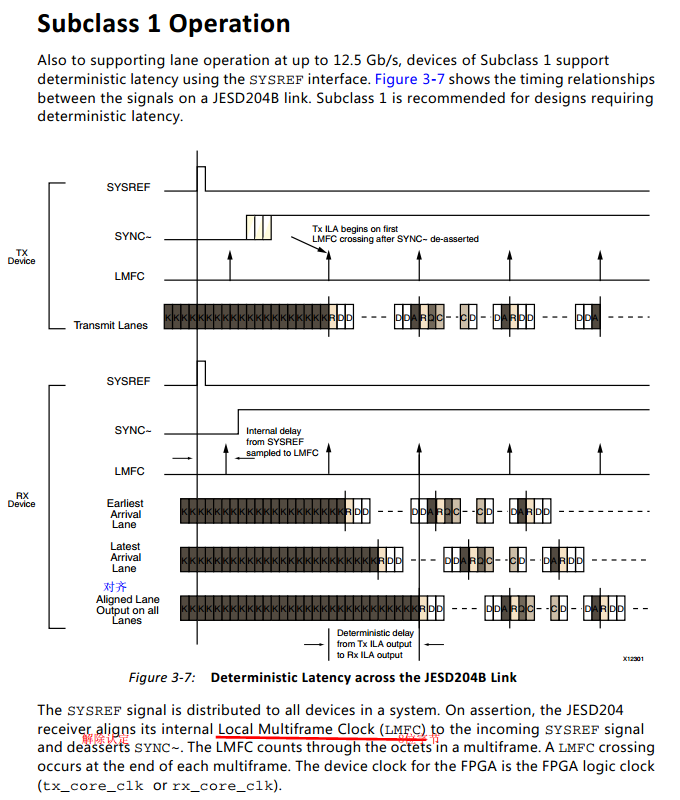 - Subclass 1:用于JESD204B,有确定性延时,带sysref与sync;