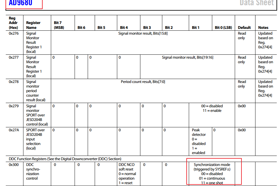 SYNC信号是根据SYSREF信号来了后才会拉高的,如下图所示。