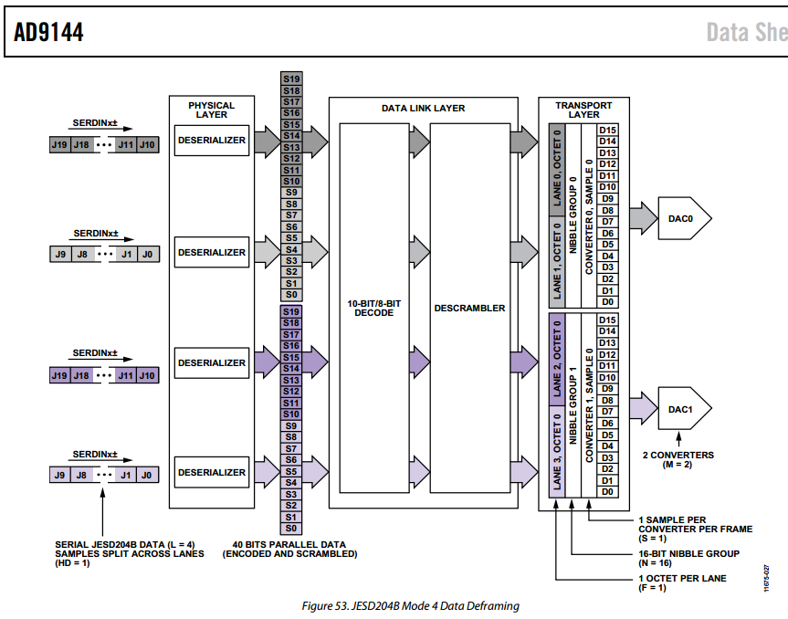 Multiframe是多帧,有M个Frame组成,具体个数根据选择的ADC/DAC芯片设定。