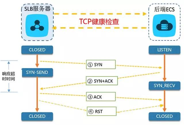 基于Tcp的三次握手机制来探测指定的IP + 端口。最佳实践可以借鉴阿里云的SLB机制,如下图。