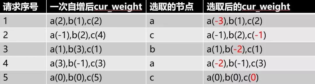 这段代码的过程如下图的表格。"()"中的数字就是自增数,代码中的cur_weight。
