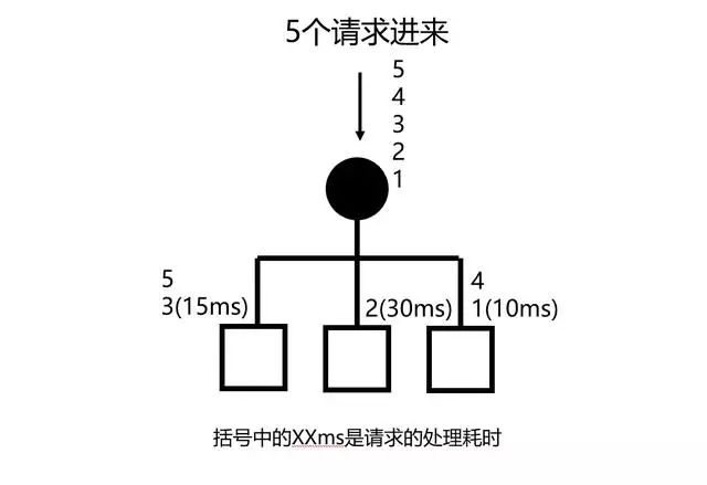 这也是一种动态负载均衡策略,它的本质是根据每个节点对过去一段时间内的响应情况来分配,响应越快分配的越多。具体的运作方式也有很多,上图的这种可以理解为,将最近一段时间的请求耗时的平均值记录下来,结合前面的「加权轮询」来处理,所以等价于2:1:3的加权轮询。