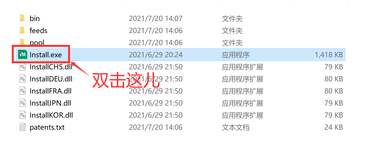 1、解压后,双击install.exe安装