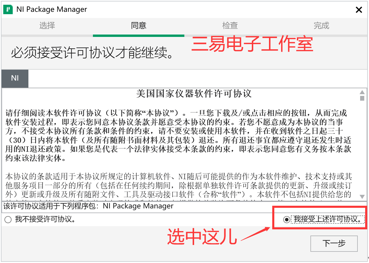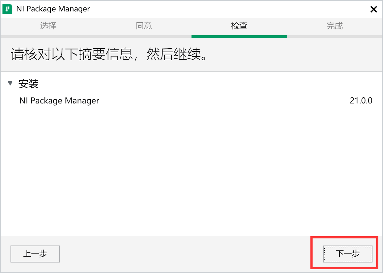 3、点击下一步,安装NI Package Manager