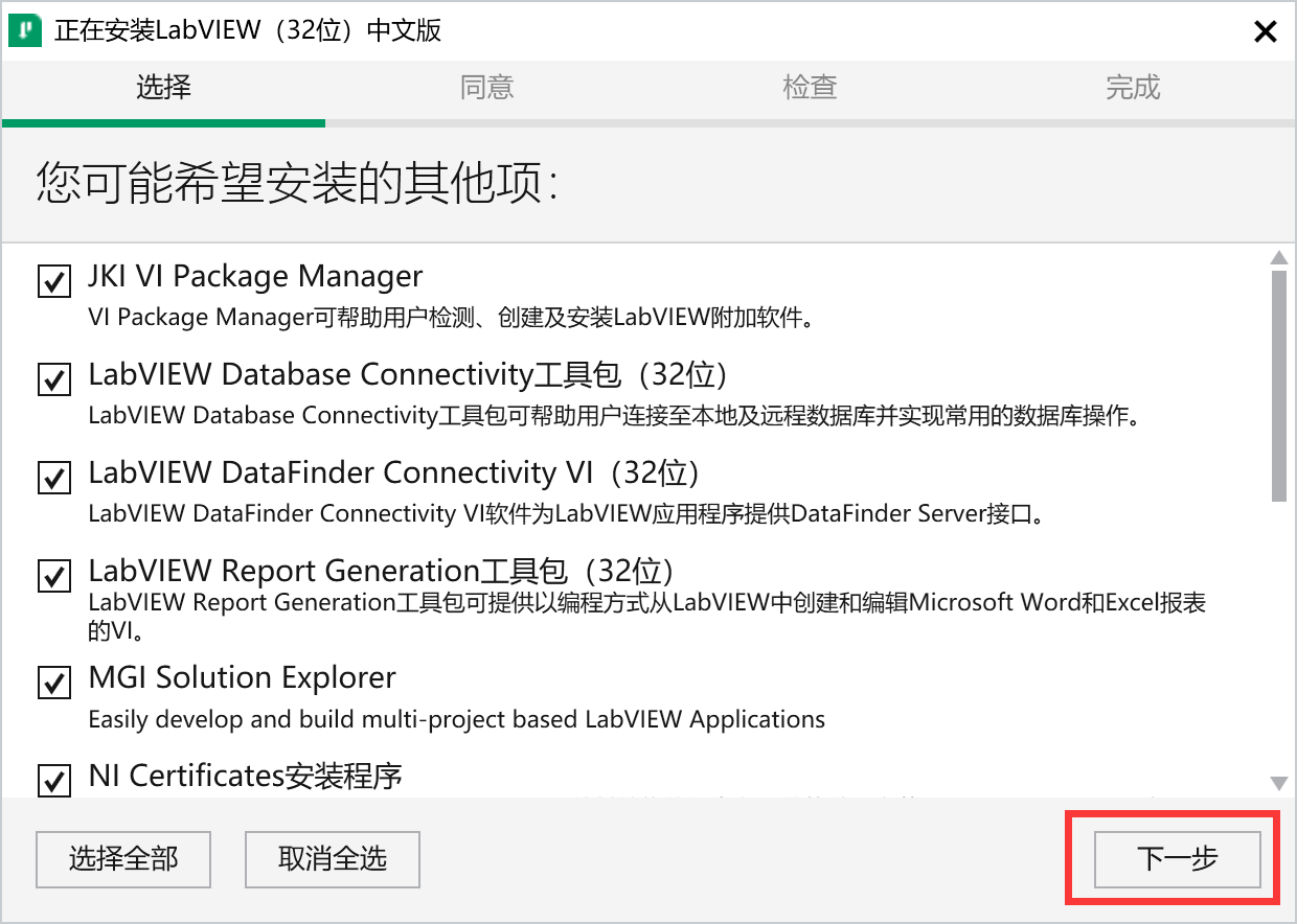 4、NI Package Manager安装完成后,通过它安装LabVIEW2020及相关工具包。点击下一步,开始安装。