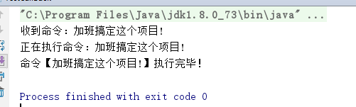 package com.example.demo1.dto;public class ClassB {public static void acceptCommand(String command){System.out.print("收到命令:"+command+"\n");doSomething(command);ClassA.callBack("命令【"+command+"】执行完毕!\n");}public static void doSomething(String command){System.out.print("正在执行命令:"+command+"\n");}