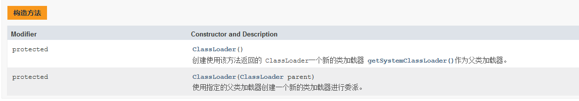 是所以类加载器都需继承的父类,除根类加载器,它是一个抽象类,其中有许多方法。ClassLoader类使用委托模式来搜索类和资源。 ClassLoader的每个实例都有一个关联的父类加载器。 当请求查找类或资源时, ClassLoader实例将在尝试查找类或资源本身之前将类或资源的搜索委托给其父类加载器。 虚拟机的内置类加载器(称为“引导类加载器”)本身不具有父级,但可以作为ClassLoader实例的父级。