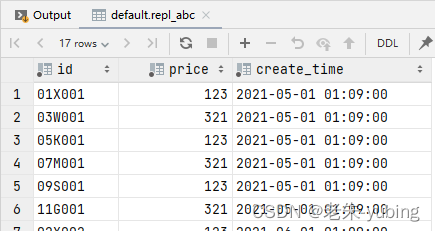 insert into repl_abc_all values('01X001',123,'2021-05-01 09:09:00'),('02X002',123,'2021-06-01 09:09:00'),('03W001',321,'2021-05-01 09:09:00'),('04W002',321,'2021-06-01 09:09:00'),('05K001',123,'2021-05-01 09:09:00'),('06K002',123,'2021-06-01 09:09:00'),('07M001',321,'2021-05-01 09:09:00'),('08M002',321,'2021-06-01 09:09:00'),('09S001',123,'2021-05-01 09:09:00'),('10S002',123,'2021-06-01 09:09:00'),('11G001',321,'2021-05-01 09:09:00'),('12G002',321,'2021-06-01 09:09:00');