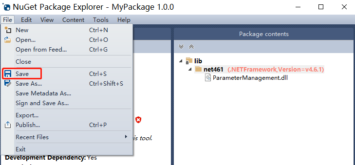 第六步,保存到目标地址,然后上传到自己搭建的nuget服务器中