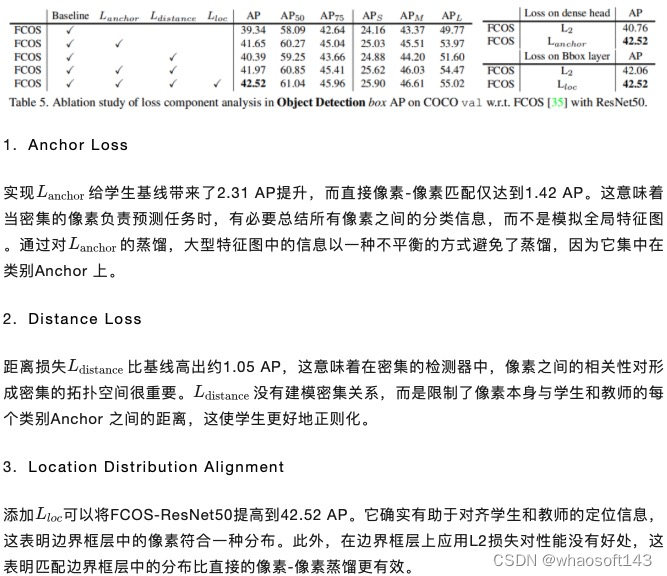 虽然两阶段和一阶段的检测器采用不同的处理方案,但它们都有一个共同点:大部分参数都用于生成高级语义特征图,作为后续任务的基础。在这个交叉点上蒸馏是弥合它们之间差距的关键。在消融研究中分析了每个组件的影响,并测试了超参数的敏感性。
