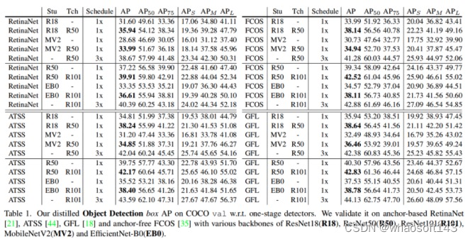近年来,由于没有专门设计的算子,单阶段检测器有利于移动应用。然而,单阶段检测器的蒸馏性能仍落后于两阶段检测器。其原因是大多数用于目标检测的蒸馏方法主要是为两阶段检测器设计的。例如,DSIG将两阶段检测器提高了2%以上。但当应用于FCOS时,其性能降低了0.8%。