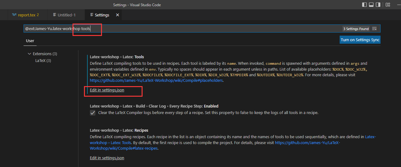 在新出现的页面中的搜索栏中输入 “ tools”(注意有空格,连在一起是搜索不出来的),找到第一个点击 “Edit in settings.json”