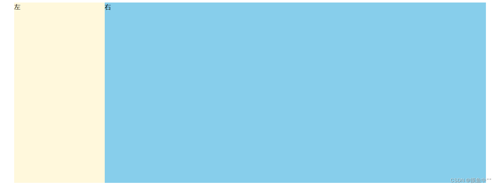 <html><head><meta charset="UTF-8"><title></title><style>.box{width: 1200PX;height: 460px;background-color: deepskyblue;margin: 0 auto;}.left{float: left;width: 230px;height: 460px;background-color: cornsilk;}.right{float: left;width: 970px;height: 460px;background-color: skyblue;}</style></head><body><div class="box"><div class="left">左</div><div class="right">右</div></div></body>