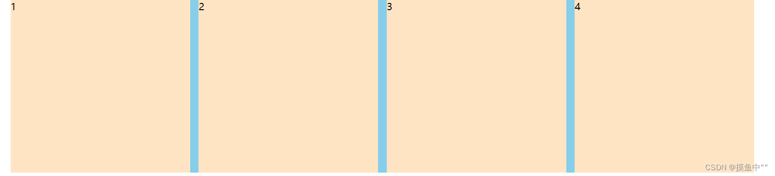 <html><head><meta charset="UTF-8"><title></title><style>*{margin: 0;padding: 0;}li{list-style: none;}.box{width: 1226px;height: 285px;background-color: skyblue;margin: 0 auto;}.box li{width: 296px;height: 285px;background-color: bisque;float: left;margin-right: 14px;}.box .four{margin-right: 0;}</style></head><body><ul class="box"><li>1</li><li>2</li><li>3</li><li class="four">4</li></ul></body>