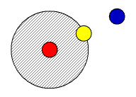 红点在圆内,为内点;黄点在圆边界,为界点;蓝点在圆外(不属于E),为外点。