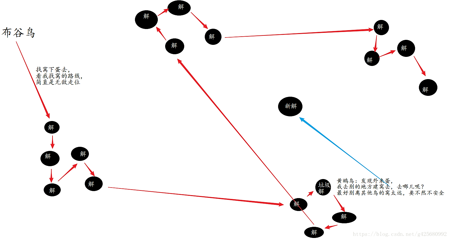宿主鸟以一定概率Pa发现外来鸟后重新建窝的位置路径,这个路径可以用萊维飞行或者随机方式4,(本文采用随机) , 除此之外,这个位置普遍采用偏好随机游动的方式,即利用了其他鸟窝的相似性。所以新建的鸟窝的位置的公式被定义如下: