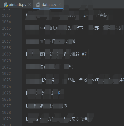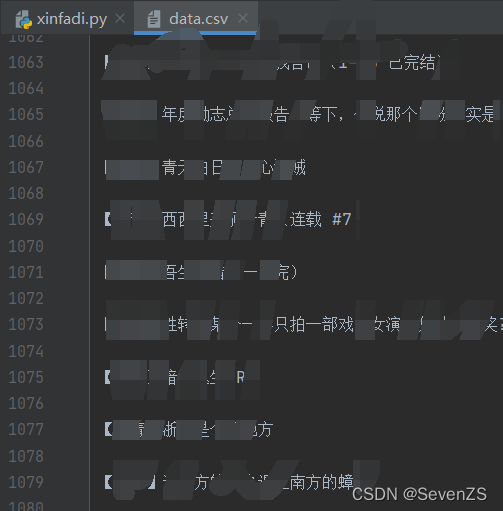 import csvdef read_csv_demo1():with open('testx.csv', 'r', encoding='utf-8') as fp:# reader是一个迭代器reader = csv.reader(fp)next(reader) # 跳过表头for x in reader:education = x[3]age = x[0]print({'education': education, 'age': age})def read_csv_demo2():with open('testx.csv', 'r', encoding='utf-8') as fp:# 不会包含标题# 返回字典reader = csv.DictReader(fp)for x in reader:value = {"education": x['education'], 'age': x['age']}print(value)if __name__ == '__main__':read_csv_demo2()