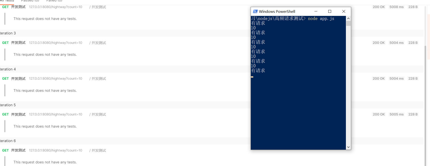 接下来直接测试,我测试了一下本地的端口,顺便对比了一下postman,就想说postman是并发的可能是没测试过的