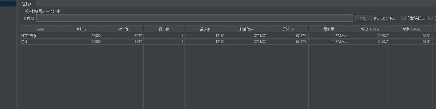 63.37%的异常,这63%的都是服务器处理不了的,也就是有一半以上的失败了,我们换2万试试