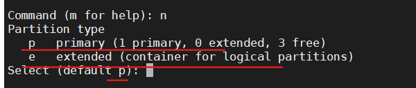 - P代表的是主分区 e代表的扩展分区 看开头是哪个字母(回车继续)