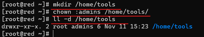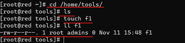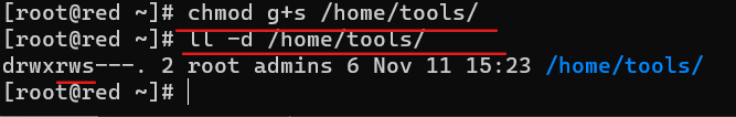- 给目录附件权限在创建文件或者目录,其附属组自动设为admins组