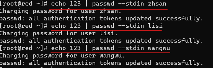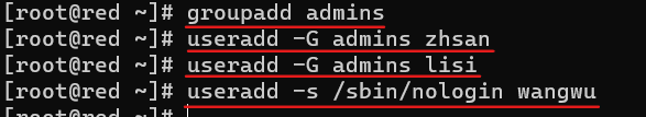 创建所有的用户,指定附属组,设置wangwu账户不可交互(就是无法登陆意思)