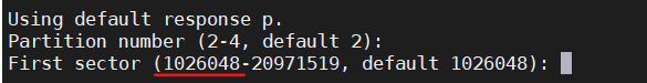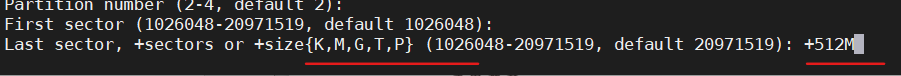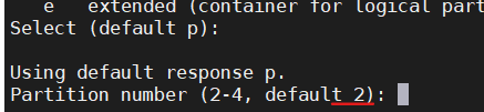 - 是第几个分区主分区最多可以添加四个(回车继续)
