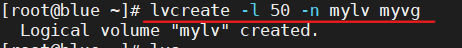 1)逻辑卷的名字为 mylv,属于 myvg 卷组,大小为 50 个扩展单元