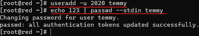 进行创建账户-U是指定UID ,设置密码可以使用passwd (使用图片方法必须带stdin否则无法设置密码)