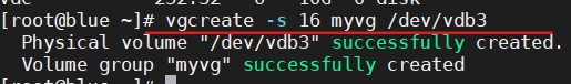 2)卷组 myvg 中的逻辑卷的扩展块大小应当为 16MiB