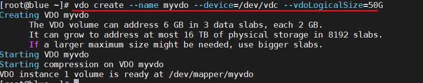 - 创建一个新的VDO的卷