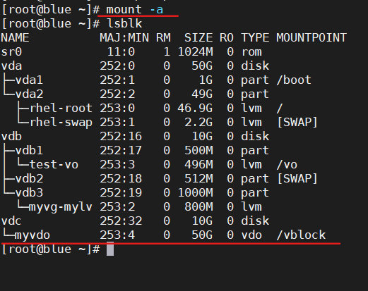 5)此 VDO 卷在系统启动时自动挂载到/vblock 目录下