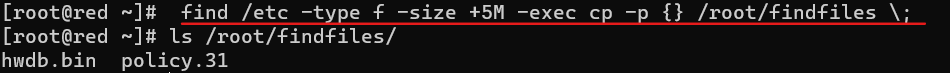 找出/etc目录下大小超过5MB的文件,并将其副本放入/root/findfiles目录
