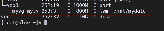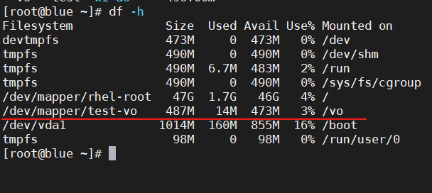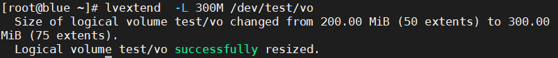 - 扩容到300 MIB将/dev/test/vo