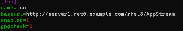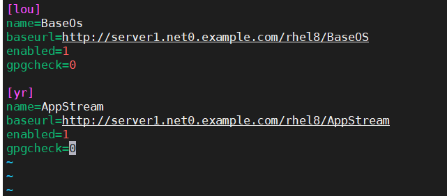 http://server1.net0.example.com/rhel8/BaseOS http://server1.net0.example.com/rhel8/AppStream