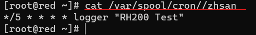 1)配置计划任务,以用户zhansan的身份每五分钟执行一次命令 logger "RH200 Test"