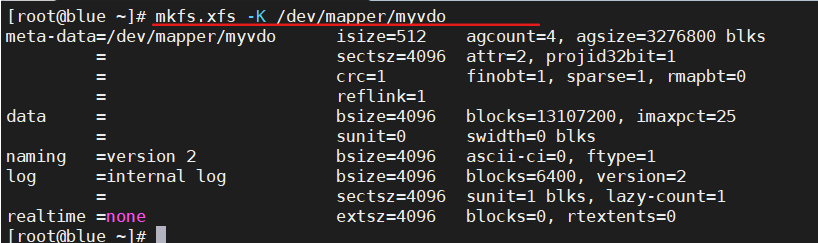- 对新的vdo的逻辑卷进行格式化,-K是快速的格式化 所有的逻辑卷都是存在/dev/mapper 下的