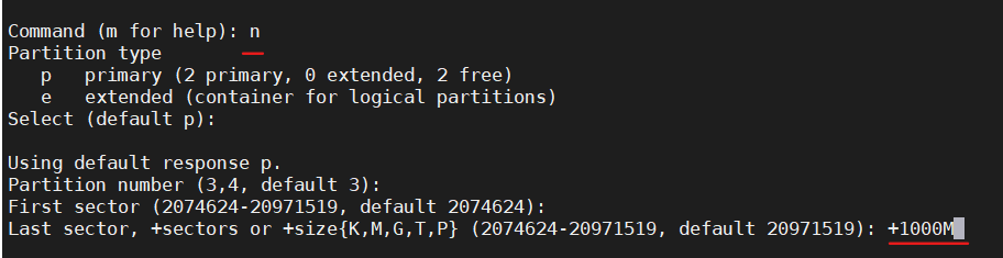 - 根据上面的要求创建一个1000M的分区