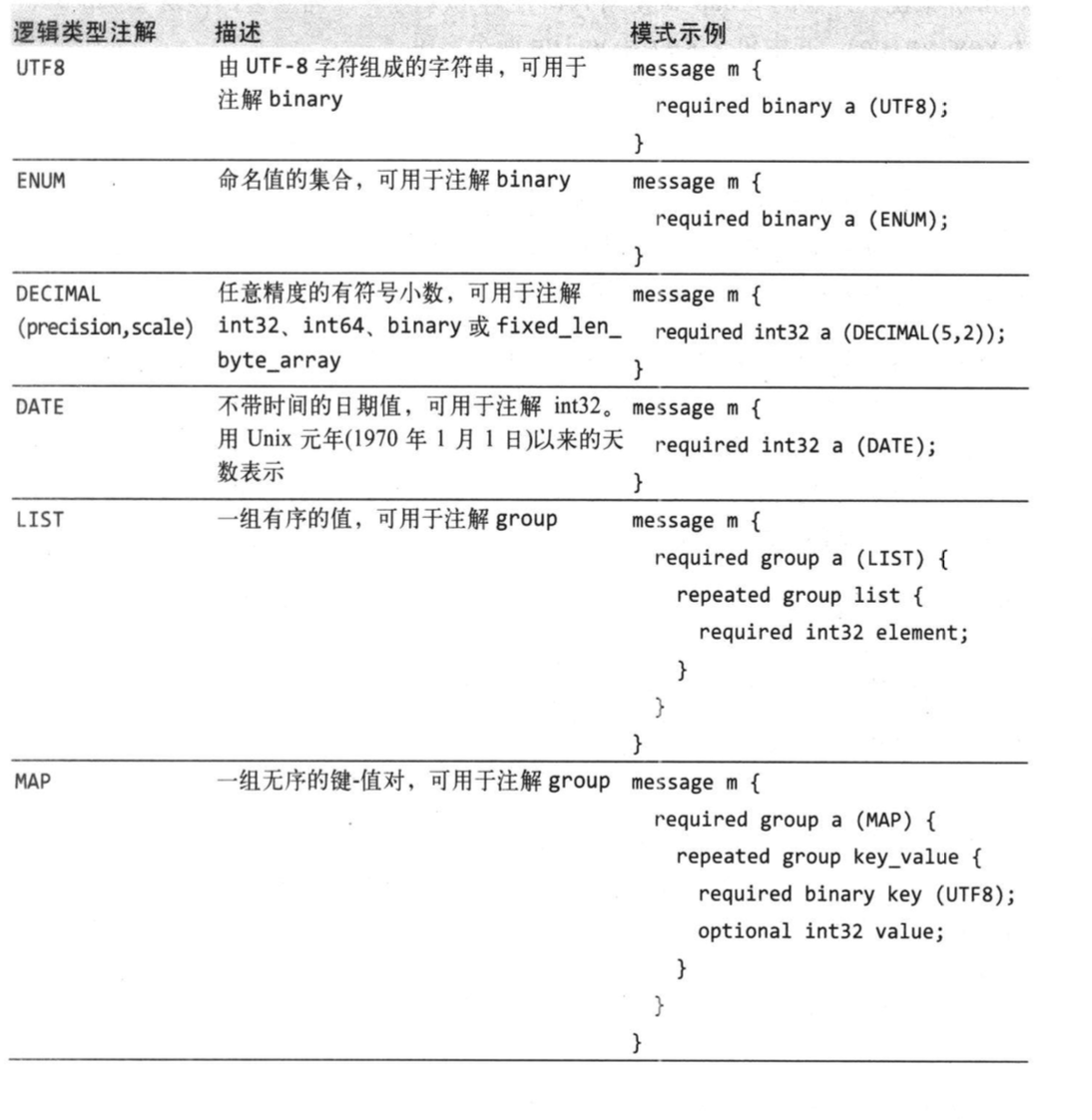 Parquet的逻辑类型: